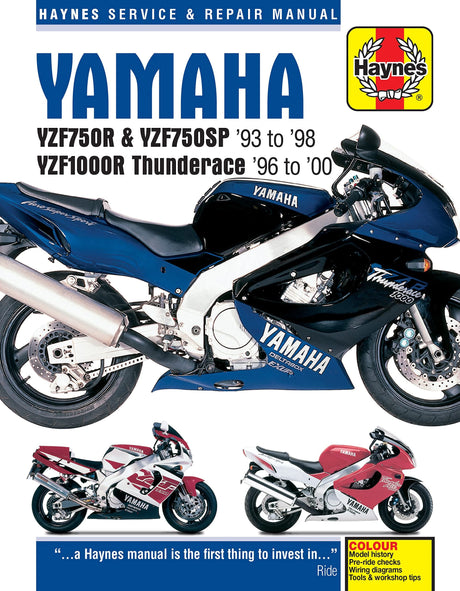 Paperback$9900Elsewhere:$10900Unit price /UnavailableAvailableShips in 1 business dayYamaha YZF750R & YZF1000R Thunderace (93 - 00) Haynes Repair Manual