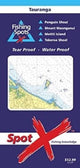 Tauranga Fishing Spots is a hydrographic chart that covers areas from Tauranga down to Pukehina Beach and out to the Penguin Shoals, Motiti, and the Little Sisters.