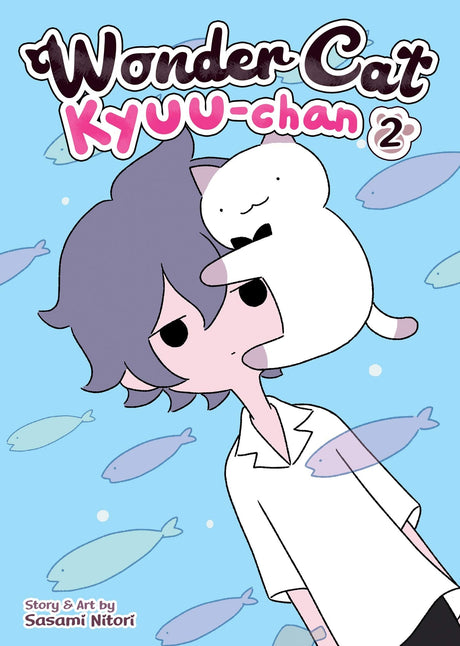 Wonder Cat Kyuu-chan Vol. 1 introduces Kyuu-chan, a cat who loves snacks, cuddles, and bow ties, but most of all, loves Hinata, the young professional who adopted this mischievous wonder cat into his home.